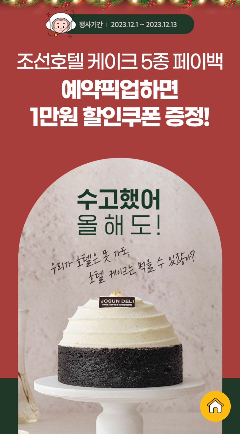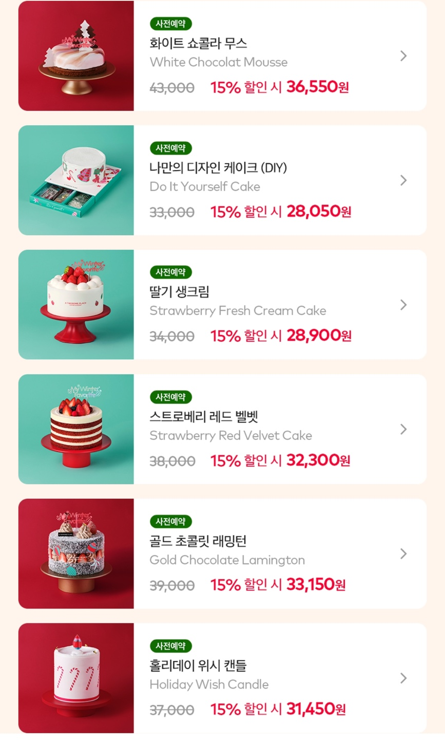 | 일반 케이크 예약기간 | 11월 29일 (수요일) ~ 12월 14일 (목요일) 16일간 |